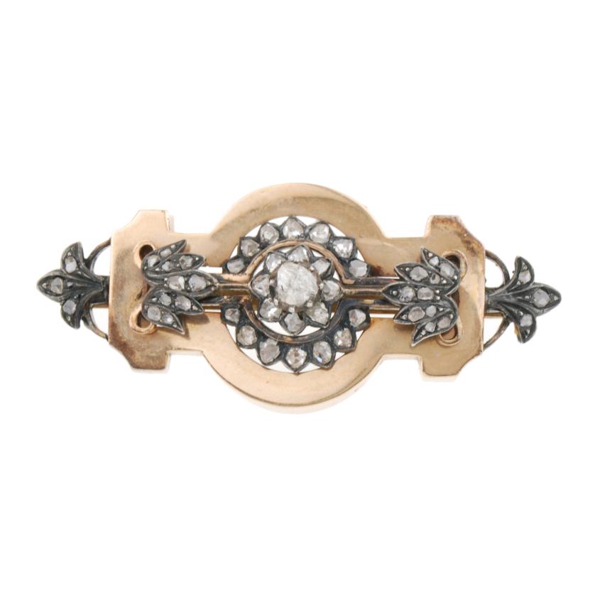Oro amarillo y plata con diamantes talla rosa. Peso toal 12,2 gr.