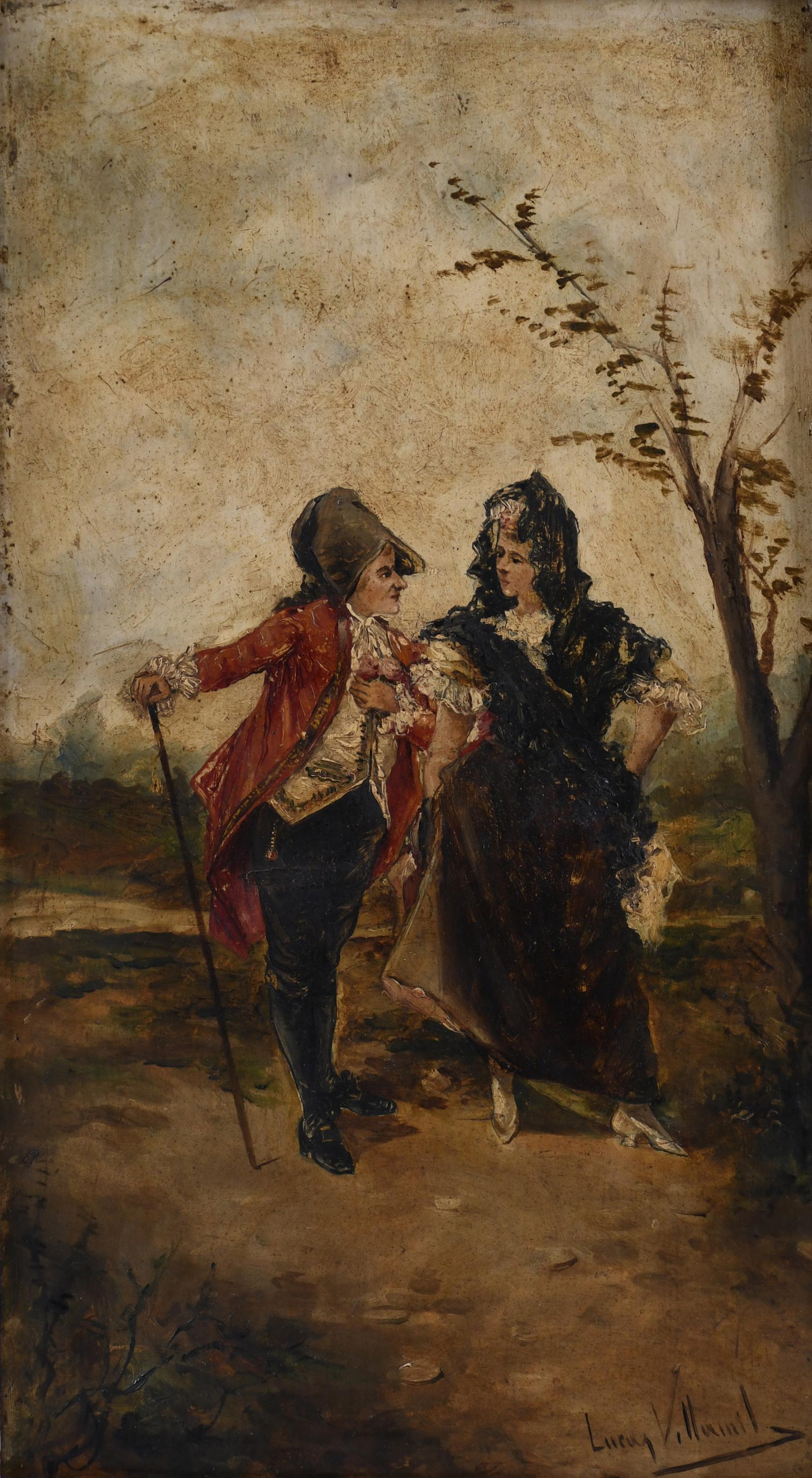 592. ATTRIBUTED TO EUGENIO LUCAS VILLAAMIL (1858-1918). "GALLANT SCENE".