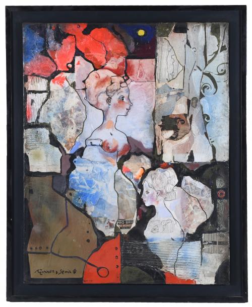 Collage and acrylic on canvas.