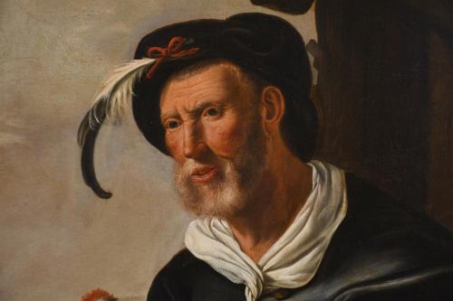 526. 17TH CENTURY FLAMENCHO SCHOOL. "VETERINARIAN AND CHICKEN".