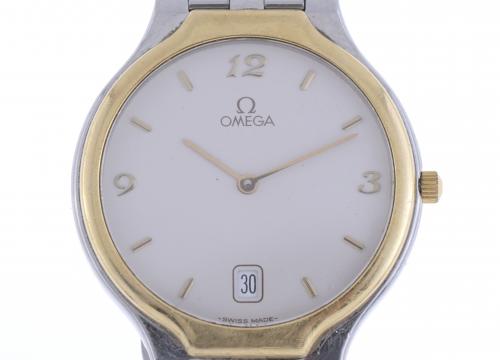 Steel with yellow gold case. White dial with date window at 6 o'clock.