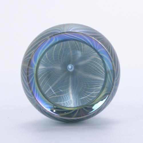 Iridescent glass in blue tones in the shape of a tulip.