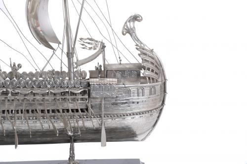 280. GREEK GALLEY FROM THE 5th CENTURY BC. IN SPANISH SILVER, 20TH CENTURY.
