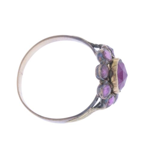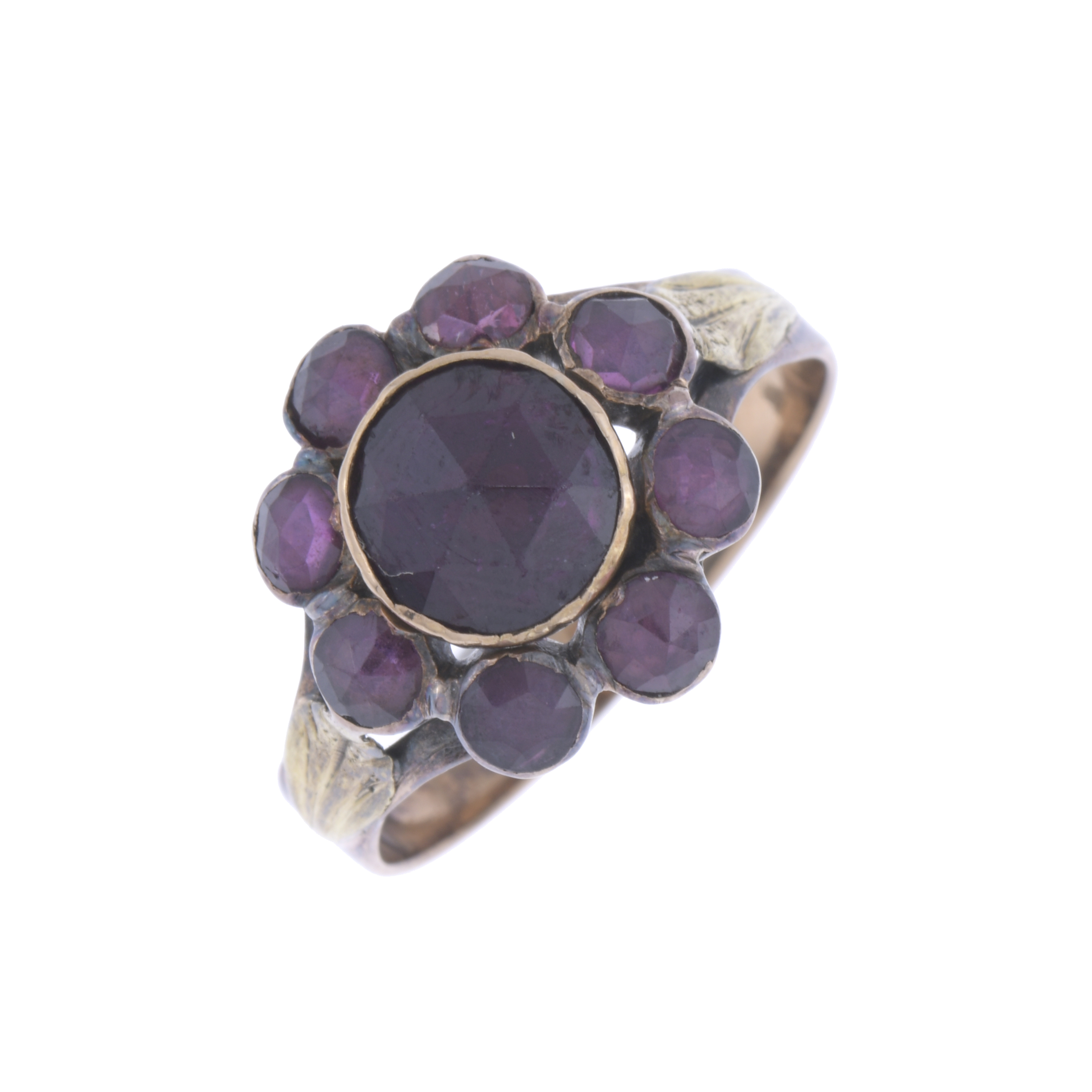35. GARNETS ROSETTE RING, EARLY 20TH CENTURY.