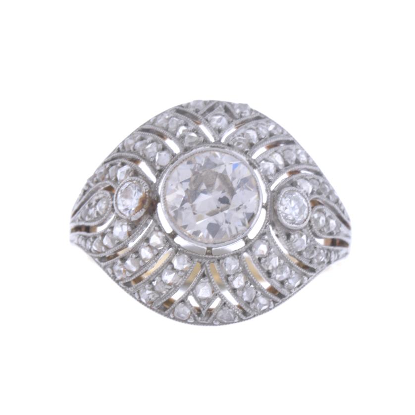 18kt yellow gold and 18kt white gold views, brilliant cut central diamond of 1.5 ct.