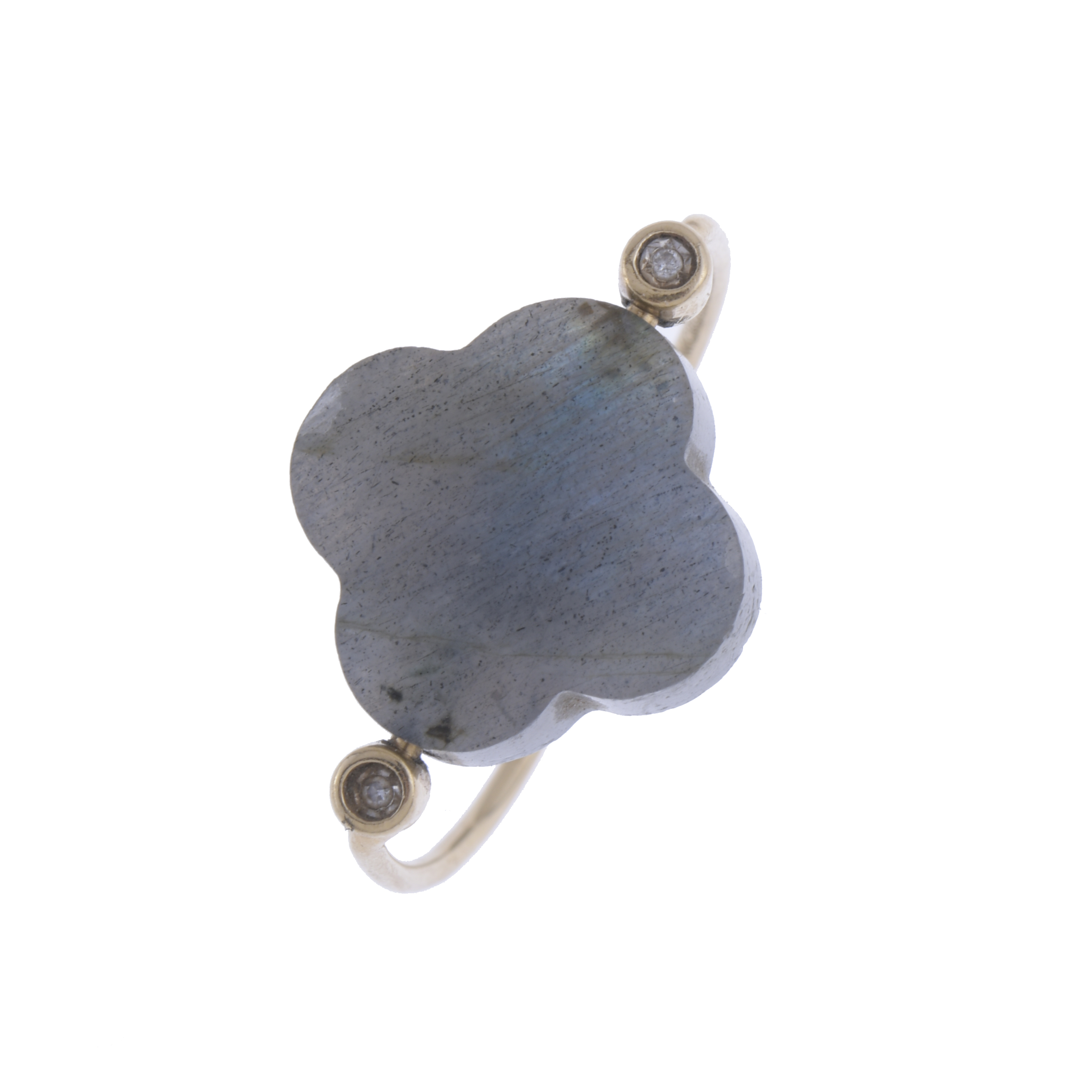 Carved labradorite in the shape of a clover.