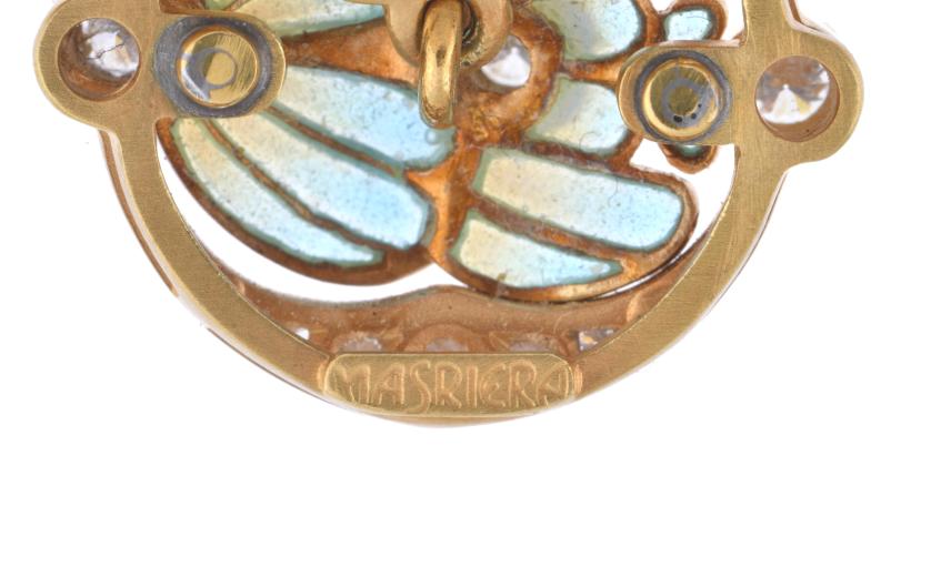18kt yellow gold, glazed enamel and brilliant cut diamonds.
