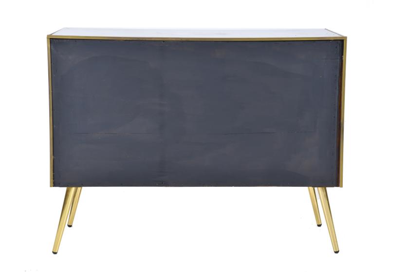 Structure in gilded metal with Murano glass panel. Interior in wood.