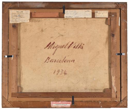 It retains labels of Dau al Set gallery, Pinacoteca and Llopart-Anglada restoration and conservation workshop.