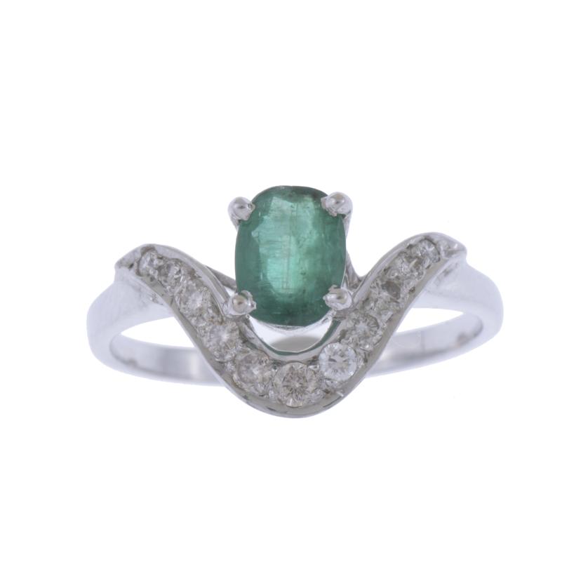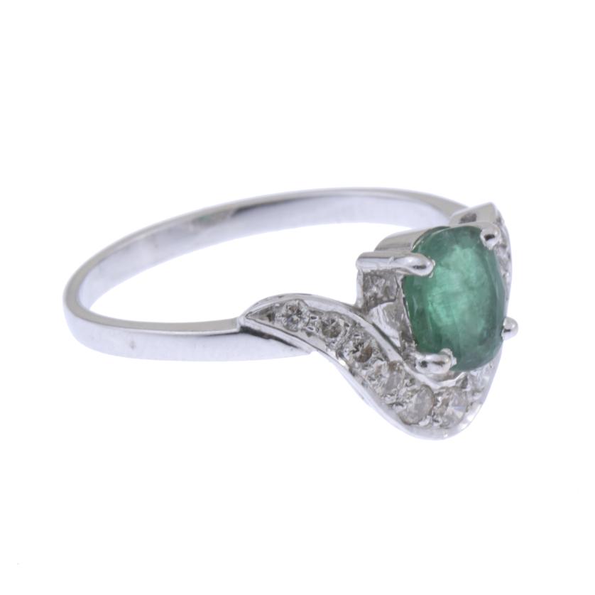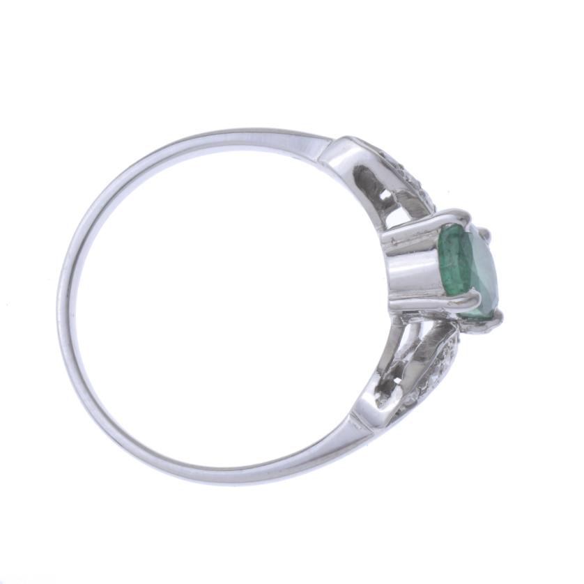 White gold with an oval cut emerald measuring 7 x 5 mm, with wave-shaped diamonds of 0.30 ct.
