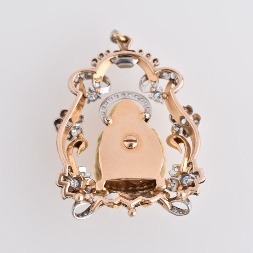 164. 1930's pendant with an image of Madonna and floral motifs.