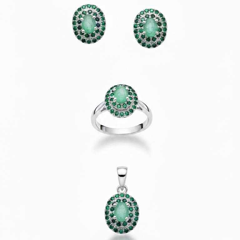 925 sterling silver. Synthetic emerald.