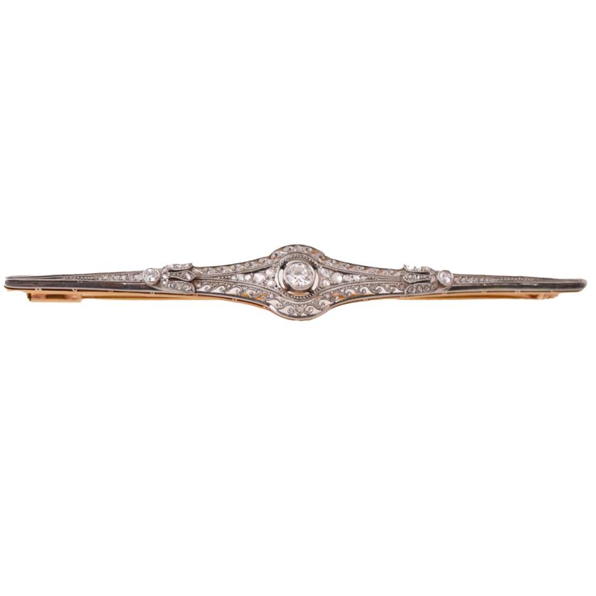 18 kt yellow gold with platinum views. A central brilliant cut transition diamond. Brilliant cut diamonds and old cut diamonds.