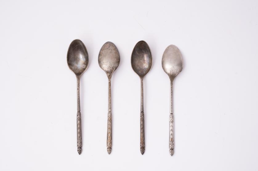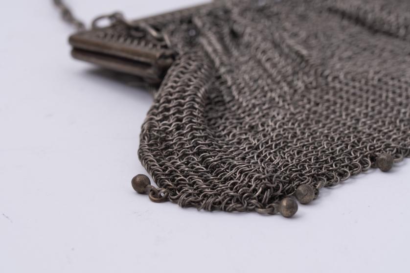 Comprising a mesh bag, a set of four teaspoons, a purse clasp, a ring, a comb, and a pill box.