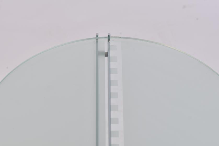 Stainless steel and 15 mm frosted glass.