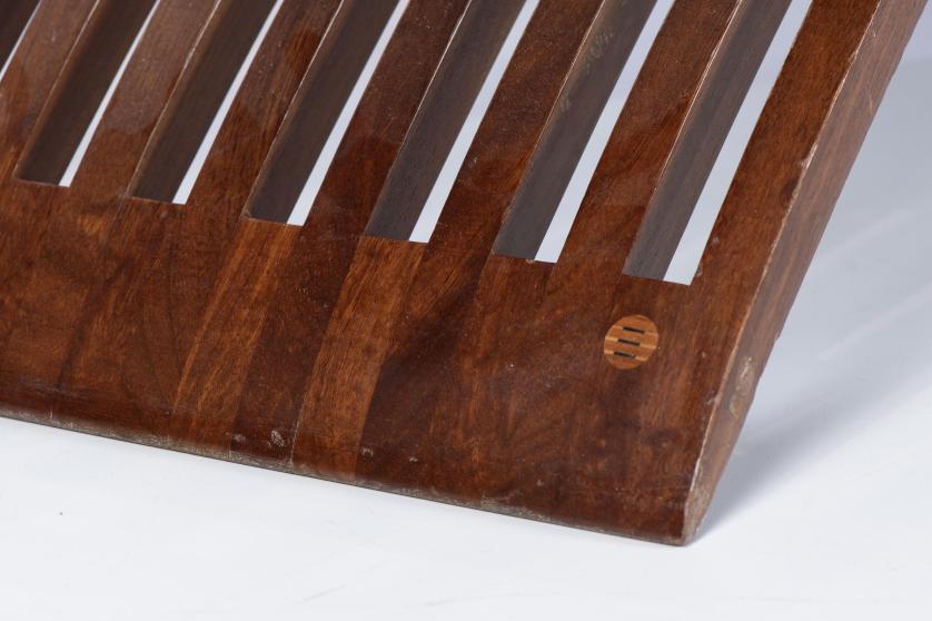 Made of iroko wood with stainless steel fittings.