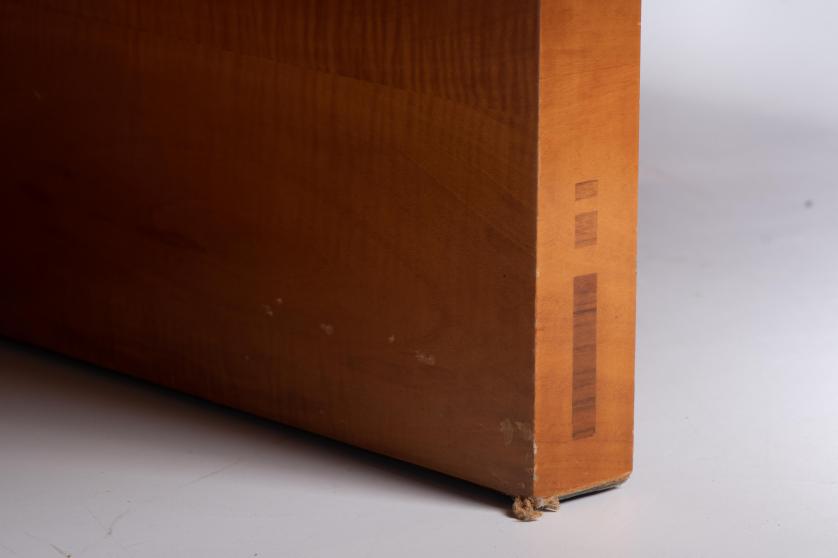Light walnut with marquetry applications.