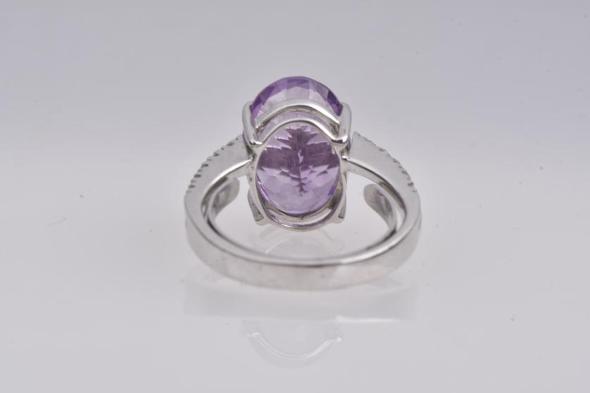 18 kt white gold. Oval cut amethyst and brilliant cut diamonds.