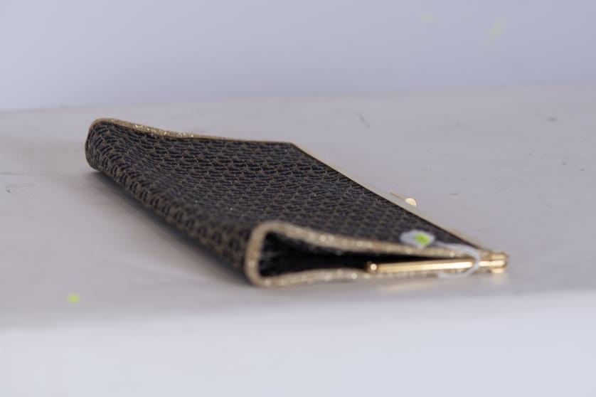 Navy blue canvas with gilt monogram, and gilt metal fastening.