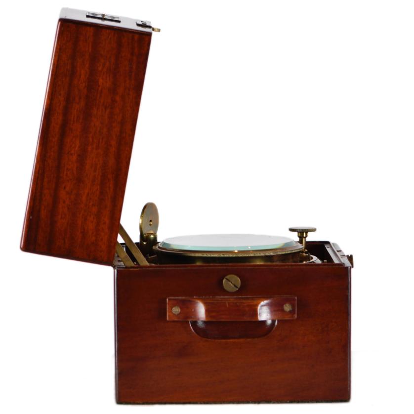 Mahogany case with brass details.
