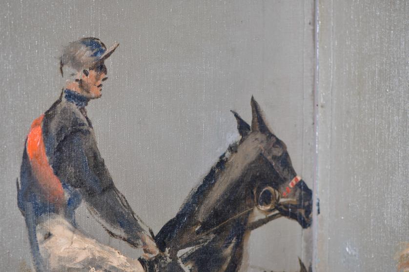 475. JOSEP MIQUEL SERRANO (1912-1982). Folding screen decorated with equestrian motifs.