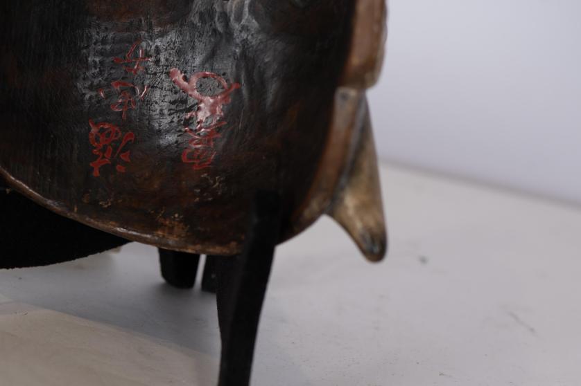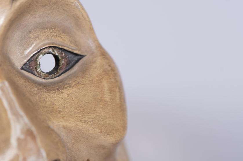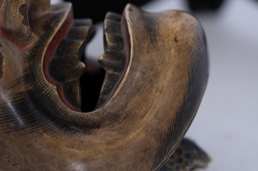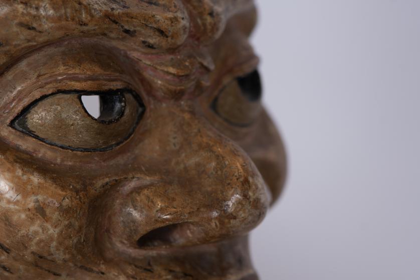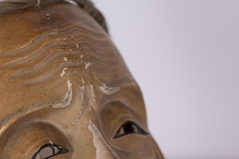 The Deigan, Yakan, Shinkaku and Shikami masks are signed on the front as “Deme Mitsutada (c. 1779-1833)”, also known by other signatures such as Mitsuyuki and Deme Naka, which allows us to attribute them to a carver from the Deme lineage of sculptors from Echizen, who specialised in Nō masks from the late 16th century to the late Edo period. It is known that many carvers from this lineage signed directly with Deme's own seal, as in the case of the Togou mask. Deme is a traditional surname in Japan, known for this prominent family of Nō mask carvers.