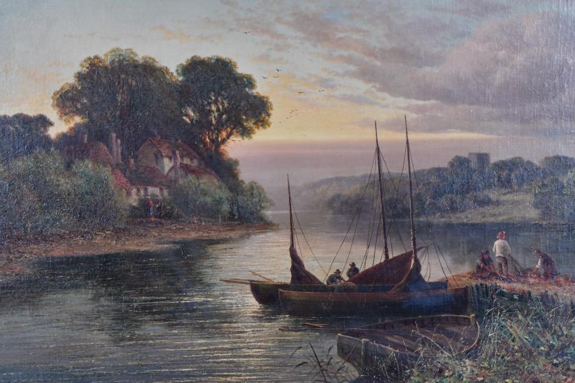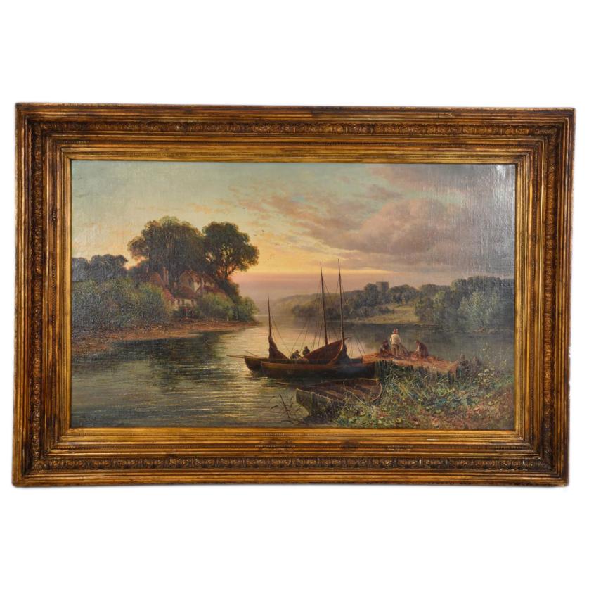 672. WILLIAM HENRY DAVIS (1786/95-1865). ‘River landscape with boats and figures’.