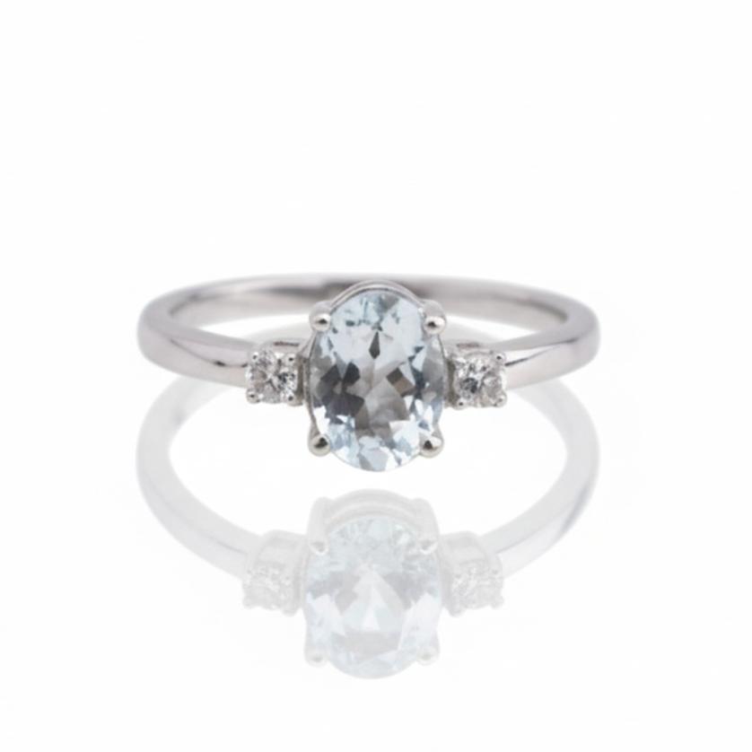 Natural aquamarine of 1 ct, and two brilliant cut diamonds of 0.10 ct total weight.