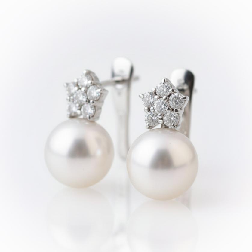 Natural pearls and brilliant cut diamonds of 0.70 cts total weight.