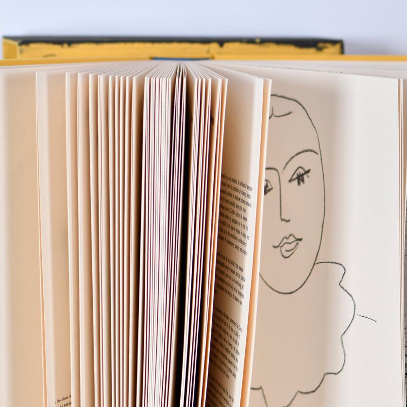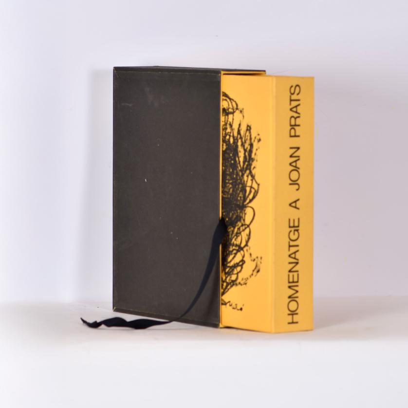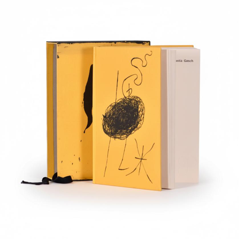 Bound in yellow burlap decorated in black with a design by Joan Miró. It includes a matching protective box.