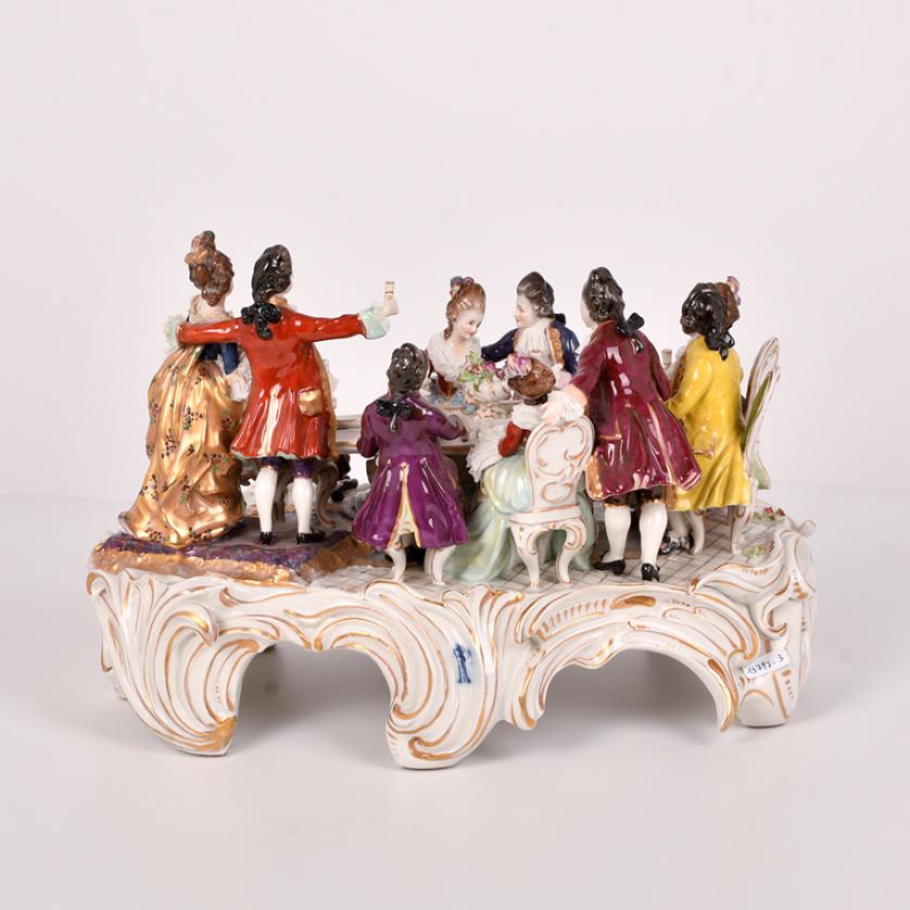 392. VOLKSTED MANUFACTURE, enamelled and polychrome ceramic group, early 20th century