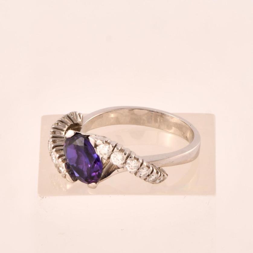 18kt white gold. Brilliant cut diamonds of approx. 0.70 ct total weight. Oval cut amethyst.