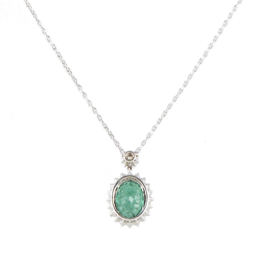 18 kt white gold. Zambian oval cut emerald, 3.89 ct.