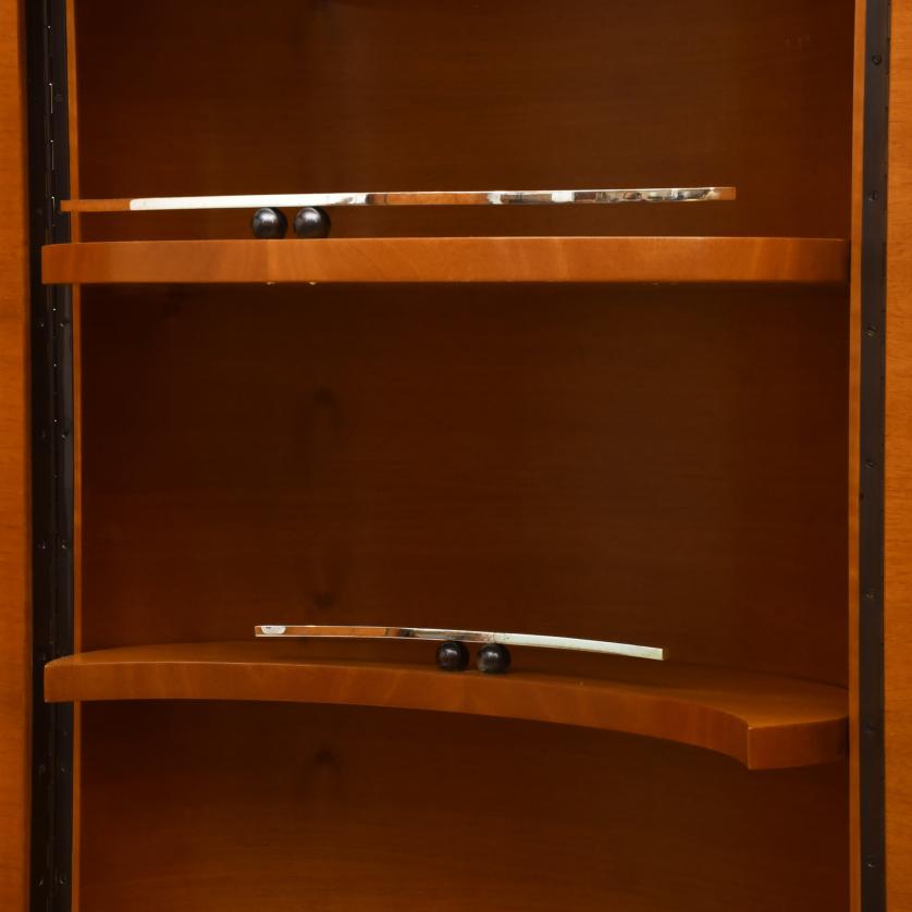 Light walnut with polished and sulphurised fittings. Stainless steel base.