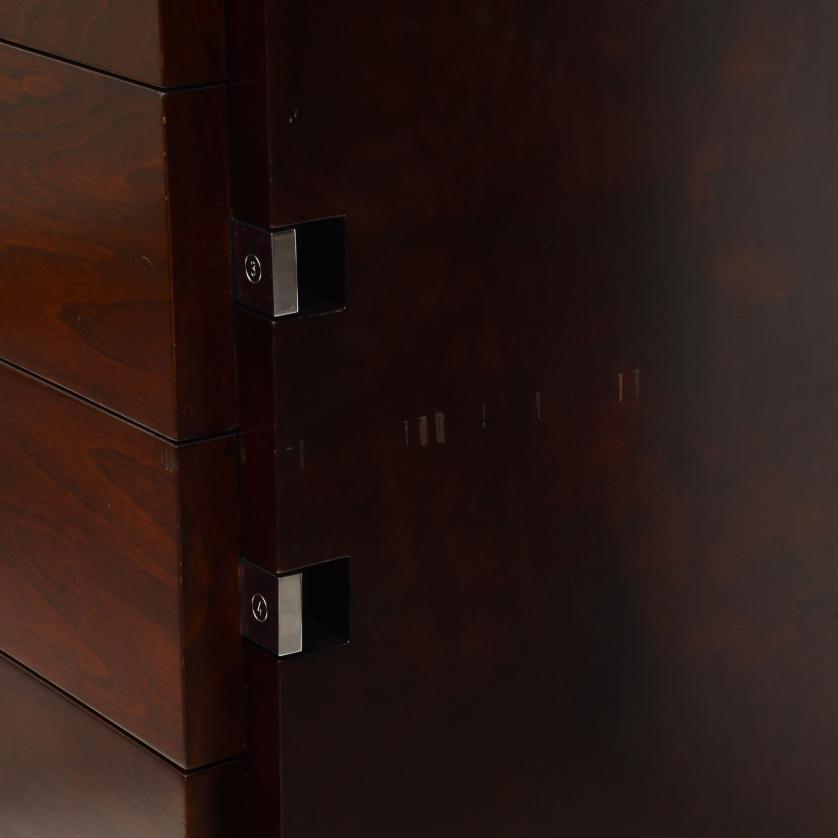 Made of exotic/tropical wood, probably from the mahogany family, with silvery metal details.