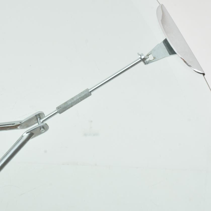Light walnut wood, shiny nickel fittings and clear glass top of 15 mm, with bevelled edges.