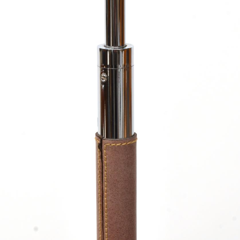 Stainless steel base with camel-coloured imitation leather. Adjustable height.