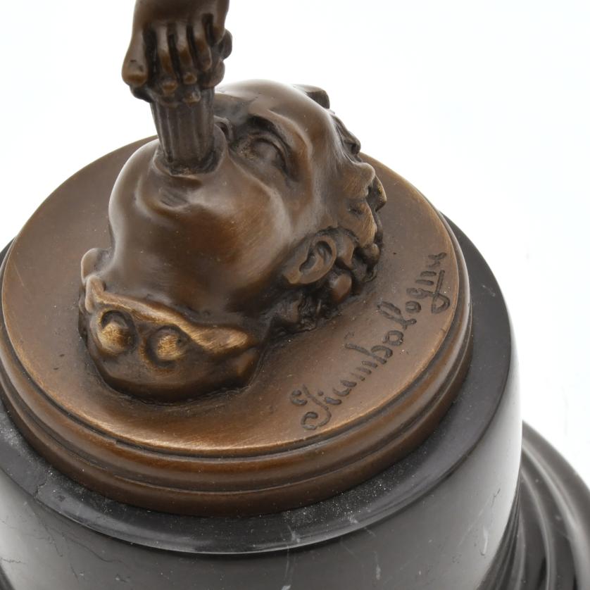 Bronze, with black marble stand.