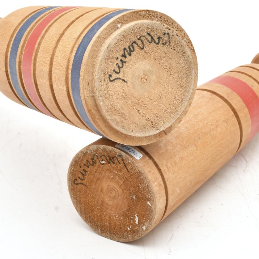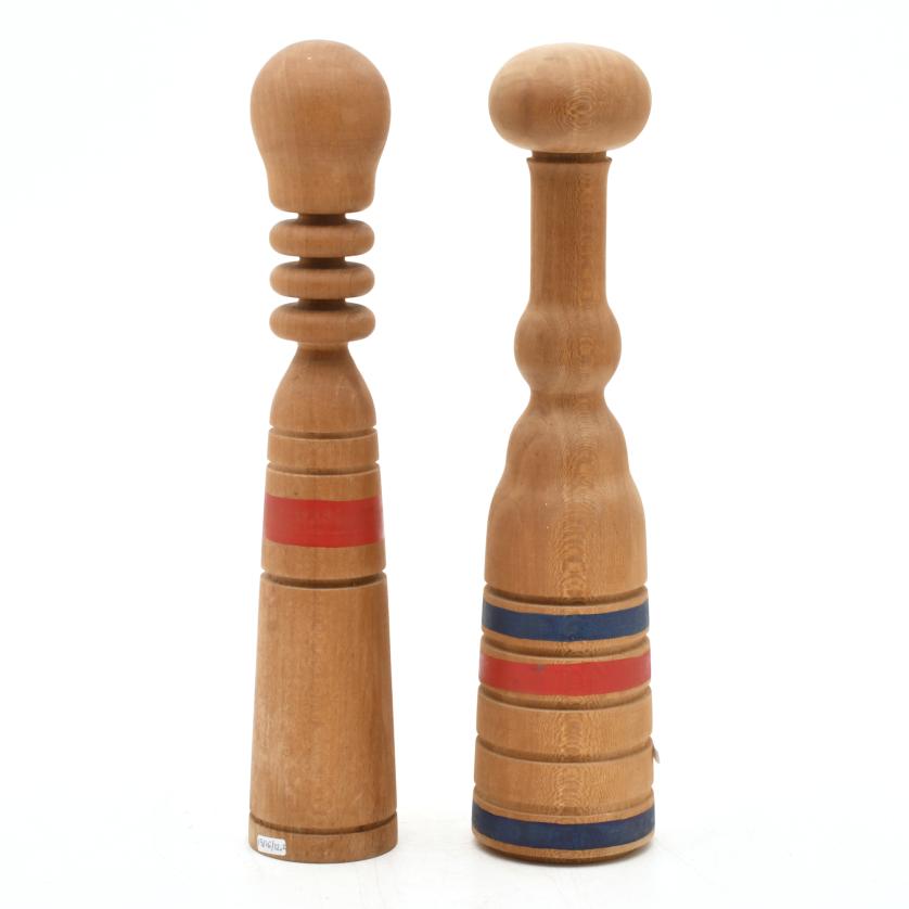 576. JOSEP GUINOVART (1927-2007). Pair of bowling pins carved, painted and fire-marked wood.