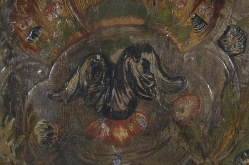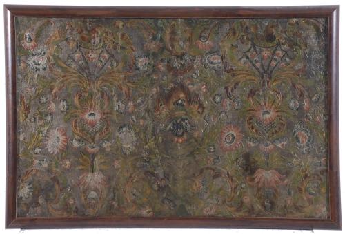 33607. FRAGMENT OF PHILIP V LEATHER WALLPAPER, EARLY 18TH CENTURY, CIRCA 1720-30.