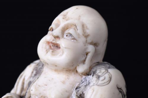 Okimono in carved ivory, finely decorated and dyed with its original polychrome.