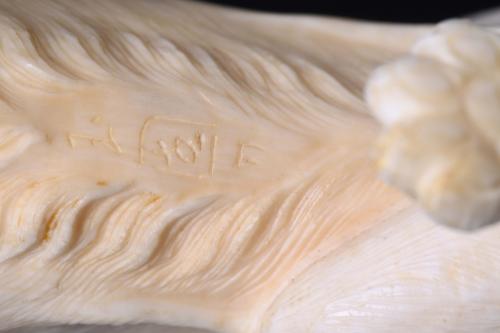 Okimono in carved and engraved ivory with two mother-of-pearl inlays in the eyes.