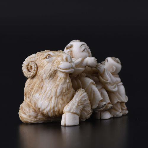 67. JAPANESE SCHOOL. MEIJI PERIOD, 19TH CENTURY. "TRADITIONAL GROUP WITH A CHILD AND A GOAT".