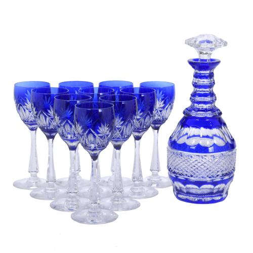 572. SET OF DECANTER AND TEN GLASSES IN BOHEMIA CRYSTAL, 20TH CENTURY.