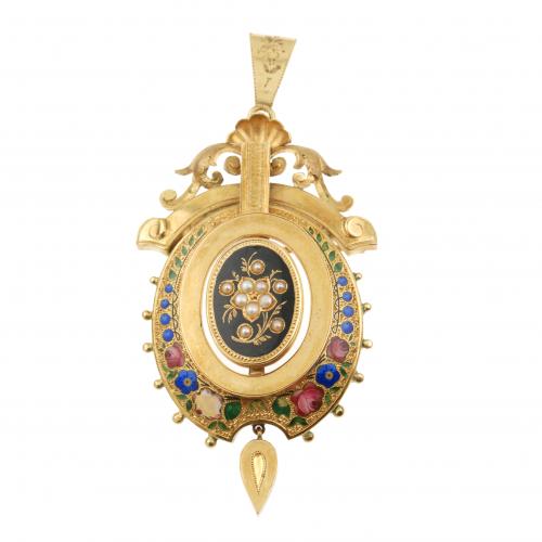 194. MAJORCA ELIZABETHAN BROOCH-PENDANT