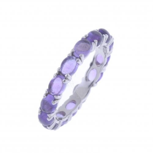 85. POMELLATO STYLE AMETHYSTS WEDDING RING.