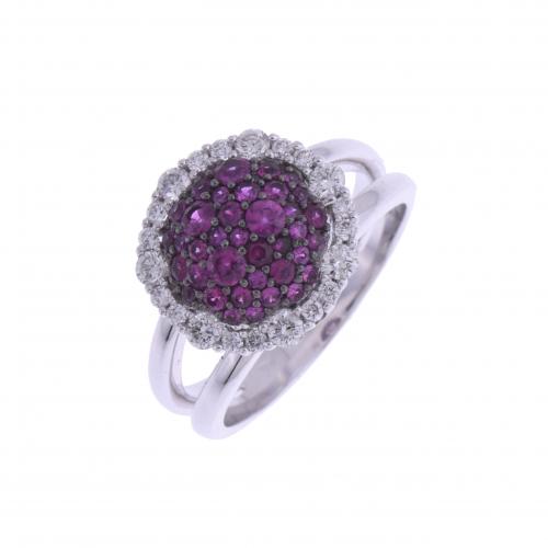 20. CHEVALIER RING WITH DIAMONDS AND RUBIES.