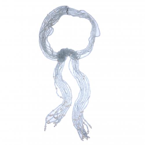 121. OPEN NECKLACE WITH AQUAMARINES AND PEARLS.