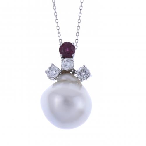119. PENDANT WITH BAROQUE PEARL, DIAMONDS AND RUBY.