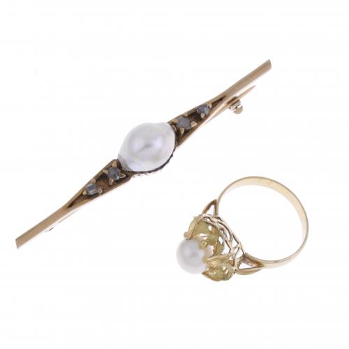 127. ELIZABETHAN EARRINGS AND RING SET.